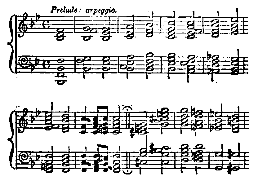 I may say here that, since my return to England, I heard a friend playing some chords upon the organ which put me very forcibly in mind of the Erewhonian statues (for Erewhon is the name of the country upon which I was now entering). They rose most vividly to my recollection the moment my friend began. They are as follows, and are by the greatest of all musicians: